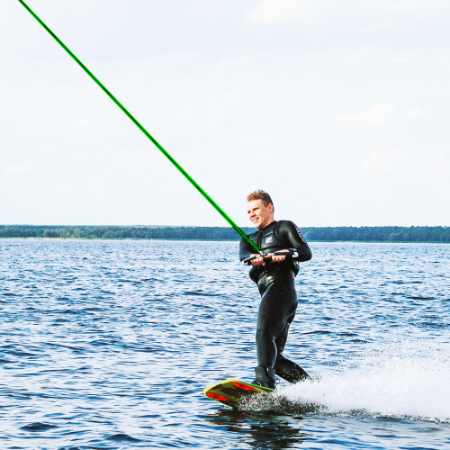 This versatile rope can be used for water skiing, wakeboarding, and kneeboarding. This water ski Tow Rope features a 15-inch aluminum core handle with a performance grip that’s comfortable and convenient. The molded finger protectors help you hang on tight for long periods of time. Plus, the 16-strand rope features a 2,200-pound break strength. It also includes a rope keeper for easy organization.